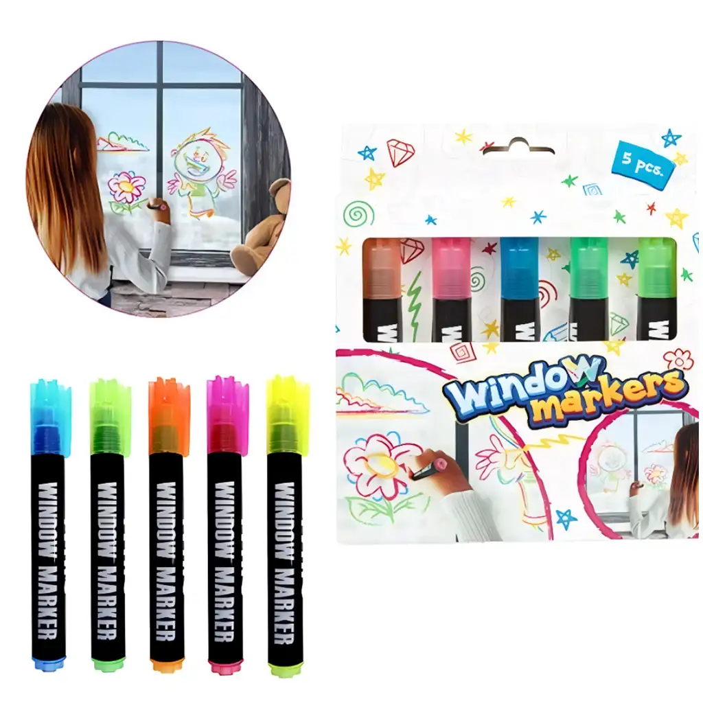 Markerele pentru ferestre sunt umplute cu vopsea pe bază de apă, care nu este toxică și se poate spăla ușor. Acest lucru înseamnă că, după creație, desenele pot fi șterse simplu cu o cârpă umedă, astfel încât suprafețele pot fi reutilizate din nou și din nou, iar copiii pot desena noi modele după bunul plac. Utilizarea markerelor pentru ferestre nu este doar distractivă, ci dezvoltă și îndemânarea și creativitatea copiilor, deoarece îi încurajează să combine liber culorile și formele.