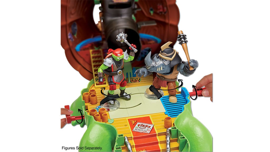 lumea imaginației.Această broască țestoasă de casă se poate deschide și ascunde în interior o zonă de antrenament, unde îi așteaptă pe exploratori o platformă de luptă mutantă, uși secrete, o tiroliană și multe alte surprize interesante. Spațiul interior detaliat permite copiilor să își joace propriile aventuri și bătălii, dezvoltându-și astfel creativitatea și imaginația.