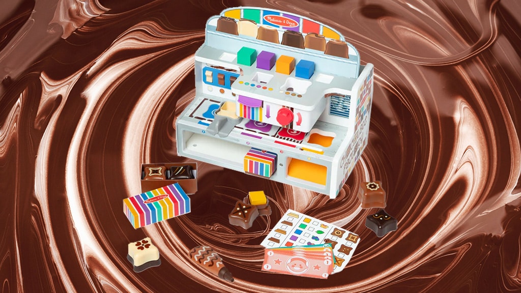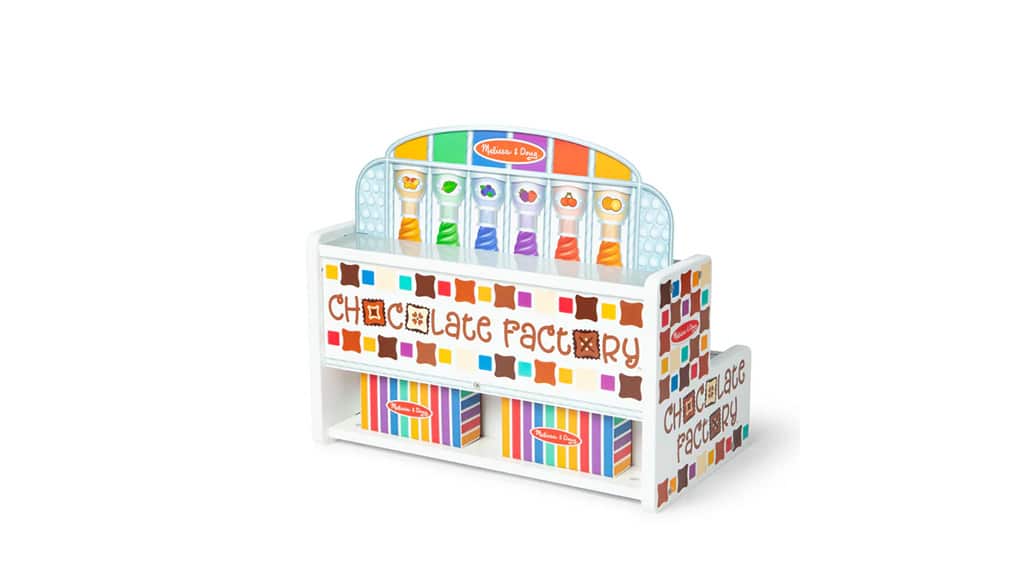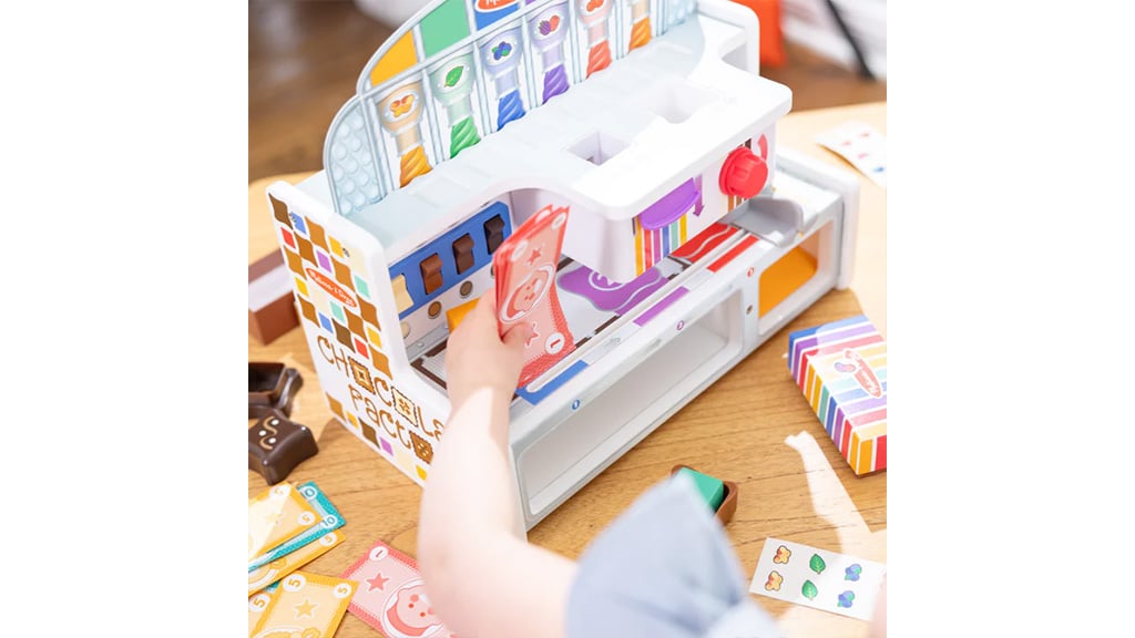 Melissa & Doug încurajează copiii să joace jocuri imaginative cu ajutorul unei fabrici de ciocolată și a unui magazin de dulciuri. Copiii pot amesteca și asorta cochilii de bomboane din plastic, toppinguri și umpluturi cu ajutorul unei benzi transportoare glisante, comutatoare, manete și cadrane pentru a pune bomboanele la locul lor. Setul include șase baze, capace, cuburi colorate, două cutii de cadouri, tuburi, semne, o carte de activități și bani de joc. Copiii pot crea propriile bomboane și pot completa și procesa comenzi. Acest joc nu este doar distractiv, ci dezvoltă și creativitatea și abilitățile motorii fine, în timp ce copiii învață să combine culori și forme, precum și bazele gândirii de afaceri. În timpul jocului, copiii pot experimenta și bucuria muncii în echipă atunci când lucrează împreună la crearea bomboanelor și la îndeplinirea comenzilor.