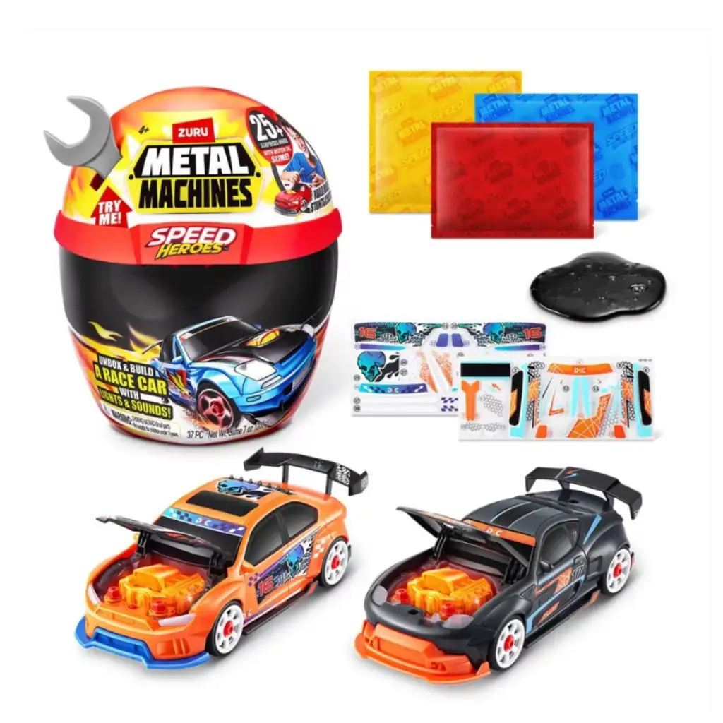 Sparge capsula specială în formă de cască și poți începe imediat să construiești! Setul surpriză Metal Machines Speed Heroes ascunde peste 20 de elemente interesante, cu ajutorul cărora poți asambla și personaliza la un stil unic propria ta mașină de curse.