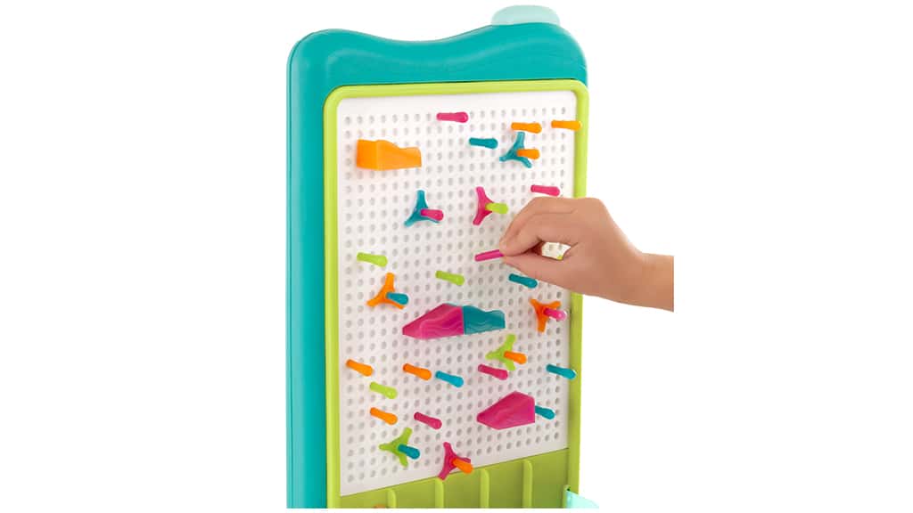 Dacă copiii doresc să își exprime latura artistică în loc de a concura sau pur și simplu doresc puțină varietate, pot folosi unul dintre cele patru șabloane incluse pe aceeași tablă pentru a crea artă cu piese colorate! Astfel, tabla de lansare a bilelor se transformă într-un șevalet de artist. Cea mai interesantă parte este că, indiferent cu ce activitate începem, tabla luminează în culori vii, amplificând experiența!Acest set este o alegere ideală pentru jocul creativ, deoarece copiii pot construi propriile piste, dezvoltându-și în același timp abilitățile de rezolvare a problemelor și abilitățile motorii fine. Elementele luminoase oferă o experiență specială și fac jocul și mai captivant, mai ales în întuneric. Prin combinarea diferitelor culori și forme, copiii își pot lăsa imaginația să zboare și pot crea opere unice. Acest joc nu este doar distractiv, ci și educativ, deoarece îi familiarizează pe cei mici cu principiile de bază ale fizicii. În ansamblu, pista de bile luminoasă B. Toys este un instrument excelent pentru a combina învățarea cu distracția.