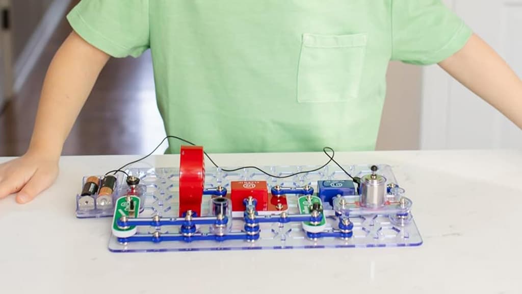 Acest set face ca învățarea să fie cu adevărat captivantă. Pachetul conține tot ce au nevoie copiii pentru a realiza peste 100 de proiecte reale de circuite electrice – de la difuzoare și playere muzicale, până la ventilatoare și lămpi controlate prin sunet. În timp ce se joacă, copiii dobândesc experiență practică despre modul în care funcționează electricitatea, își dezvoltă gândirea critică și se familiarizează cu numeroase concepte științifice.