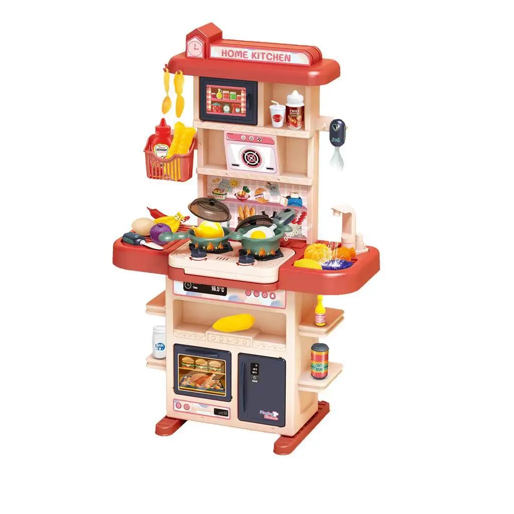 Set de jocuri de bucătărie roșu cu lumină și sunet, 43 de piese.Set de jocuri de bucătărie roșu cu lumină și sunet, 43 de piese.