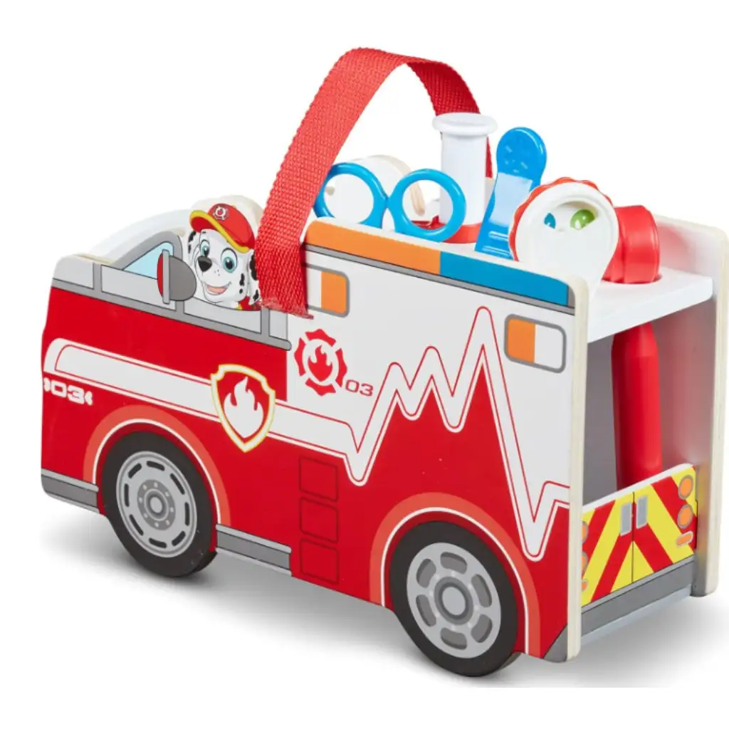 Set de pompieri cu mașină de lemn pentru dezvoltarea abilităților Marshall din Patrula Cățelușilor, cu accesorii - Melissa & Doug