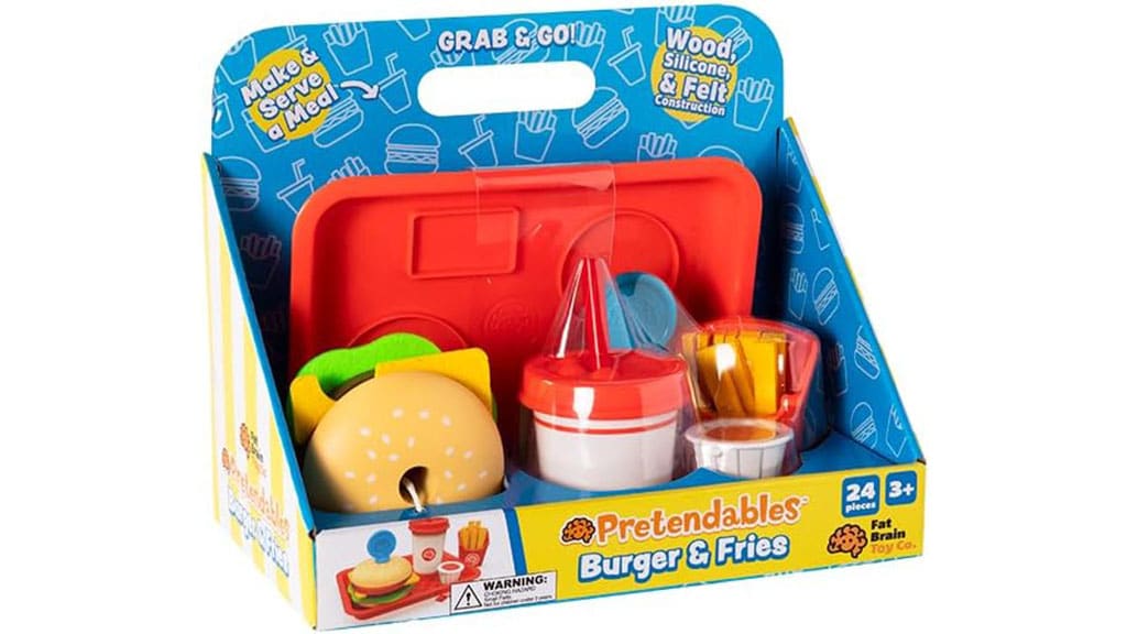 Fat Brain Toys a extins meniul Pretendables cu hamburgeri și cartofi prăjiți! Cu acest set de 24 de piese, copiii pot juca rolul unei mese reale și pot pregăti un hamburger delicios și distractiv. Setul conține toate elementele necesare pentru ca copiii să petreacă timpul creativ și distractiv, dezvoltându-și imaginația și abilitățile sociale. În timpul jocului, copiii pot învăța bazele preparării mâncării și se pot bucura de bucuria jocului împreună cu prietenii sau membrii familiei.