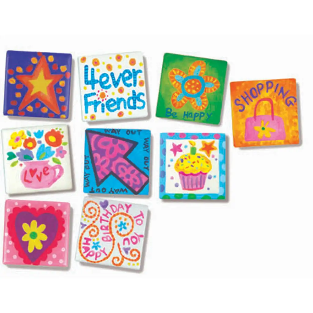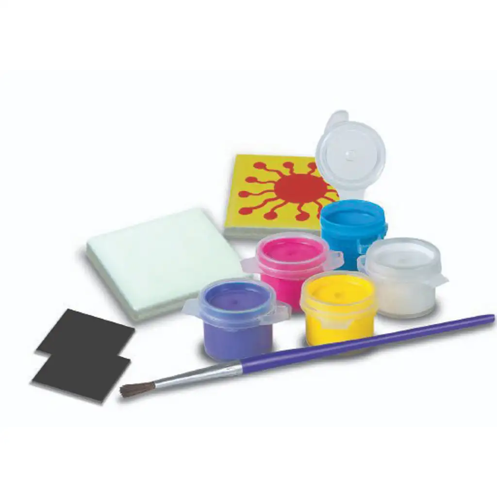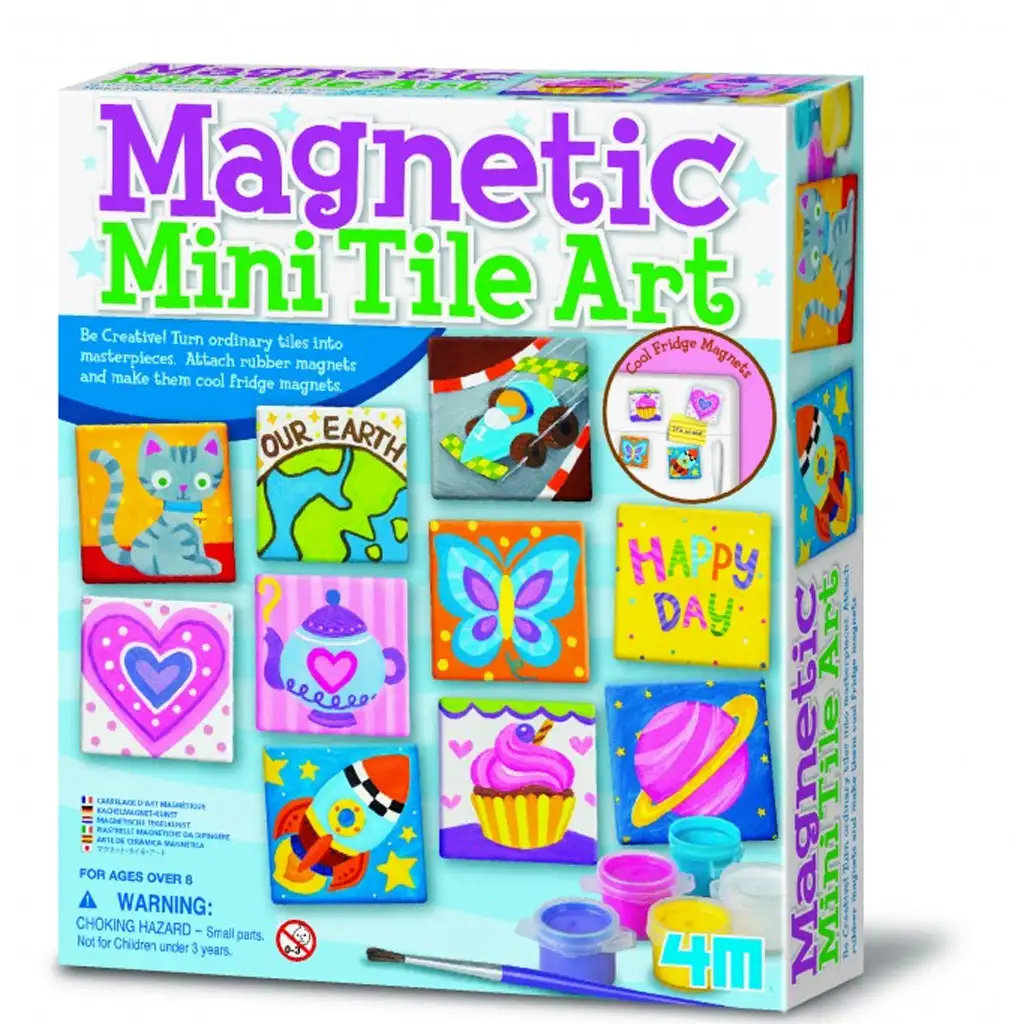 Dă frâu liber creativității copilului tău cu acest set super distractiv de realizat magneți de frigider! 4M Magnetic Mini Tile Art permite copiilor să creeze magneți de frigider unici, pictați chiar de ei pe plăcuțe mici de dimensiunea unor țigle – cu motive colorate, drăguțe și vesele, sau chiar cu idei proprii originale. Setul conține toate uneltele necesare pentru creație artistică: pensulă, vopsele, benzi magnetice și, desigur, plăcuțele mini pe care se poate picta.