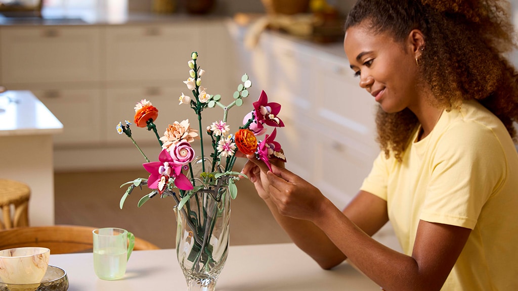 Fiecare floare este realizată din piese provenite din diferite seturi LEGO: de exemplu, orhideele de barcă conțin o mică broască drăguță ca parte a florii, în timp ce petalele de ranunculus persan sunt bucăți de lamă de topor mic, atașate la o piesă de volan, oferind un sentiment unic de set de construcție. Ghidul conține ilustrații utile care te conduc prin fiecare pas al procesului și împărtășește, de asemenea, fapte educaționale distractive despre fiecare floare. Dacă preferi o prezentare vizuală care te ghidează prin proces, ghidul include și un cod QR care duce la tutoriale video. Setul vine și într-o cutie cadou decorativă, fiind astfel un cadou minunat pentru familia ta, prietenii tăi sau pentru cineva special.