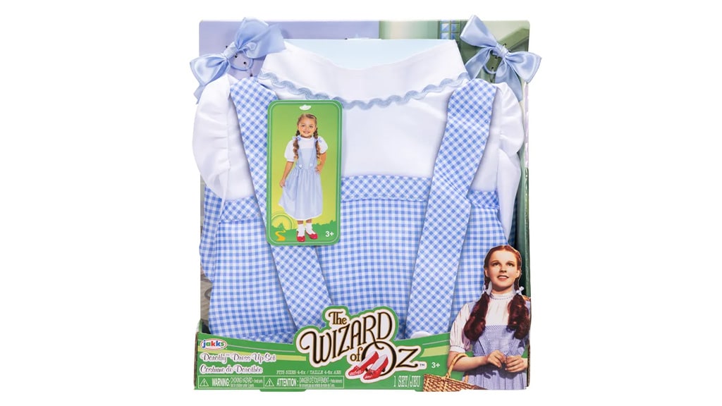 Copiii pot descoperi Orașul de Smarald sau pot crea noi aventuri palpitante de joc de rol, deghizându-se în Dorothy. Setul de costume Dorothy conține o replică fidelă a rochiei albastru-alb în carouri, cu șorț, precum și panglici de păr asortate.