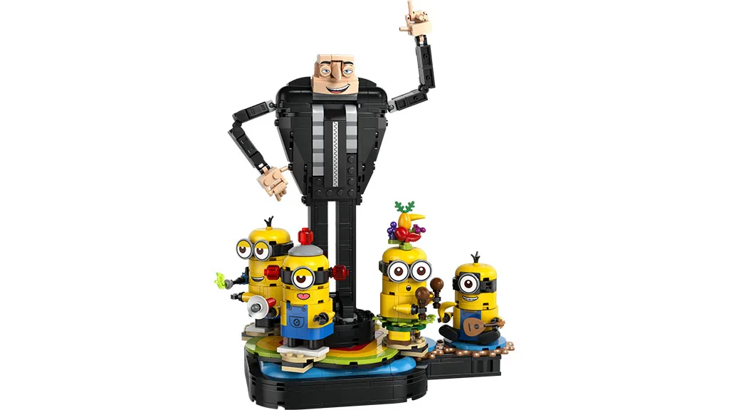 LEGO Gru 4 Minionii și Aventura în Familie a lui Gru, care este destinat copiilor de 8 ani și mai mari, este format din 868 de piese și dispune de un acoperiș înclinat, precum și o cabană colorată. LEGO Construcția de Cărămizi Gru, care este destinat copiilor de 9 ani și mai mari, îl prezintă pe Gru înconjurat de Minioni dansatori, inclusiv Mel, care cântă la ukulele, și Kevin, care este echipat cu un pistol de gaze.