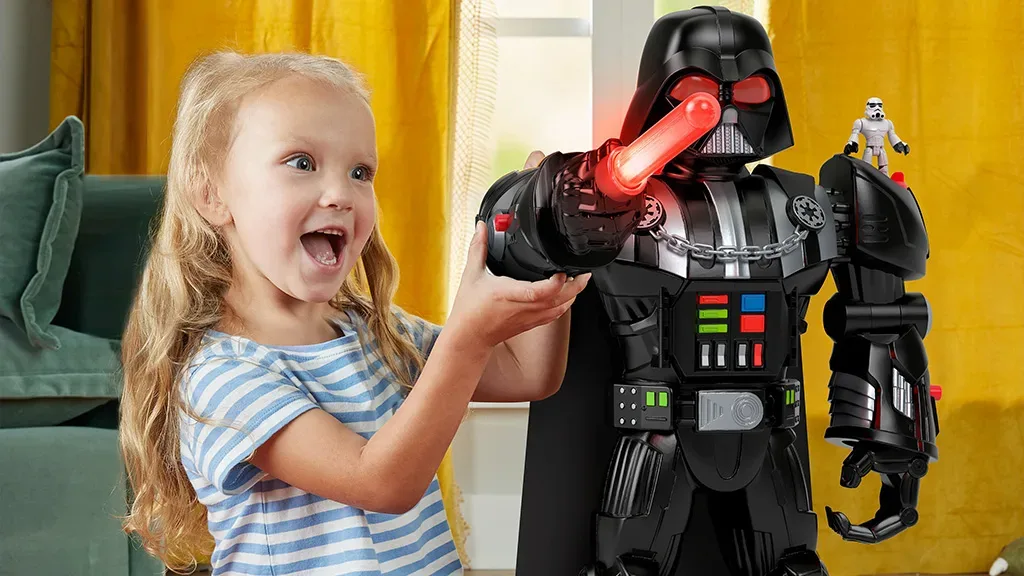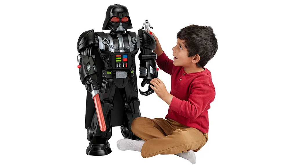Tinerii fani se pot pierde în aventuri imaginare cu Imaginext Star Wars Darth Vader Bot de la Fisher-Price. Infamul comandant militar al Imperiului Galactic este reimaginat ca un set de jucării robot interactive, care măsoară peste 2 picioare în înălțime.