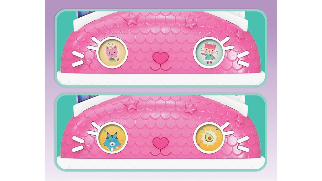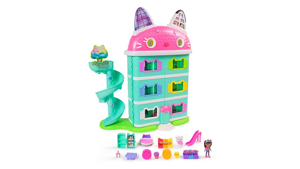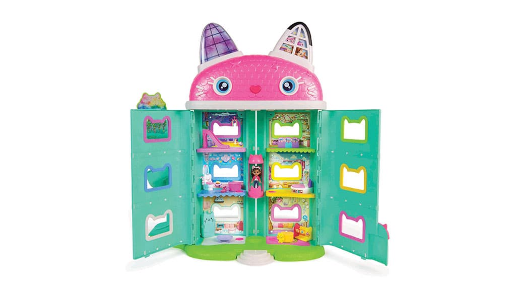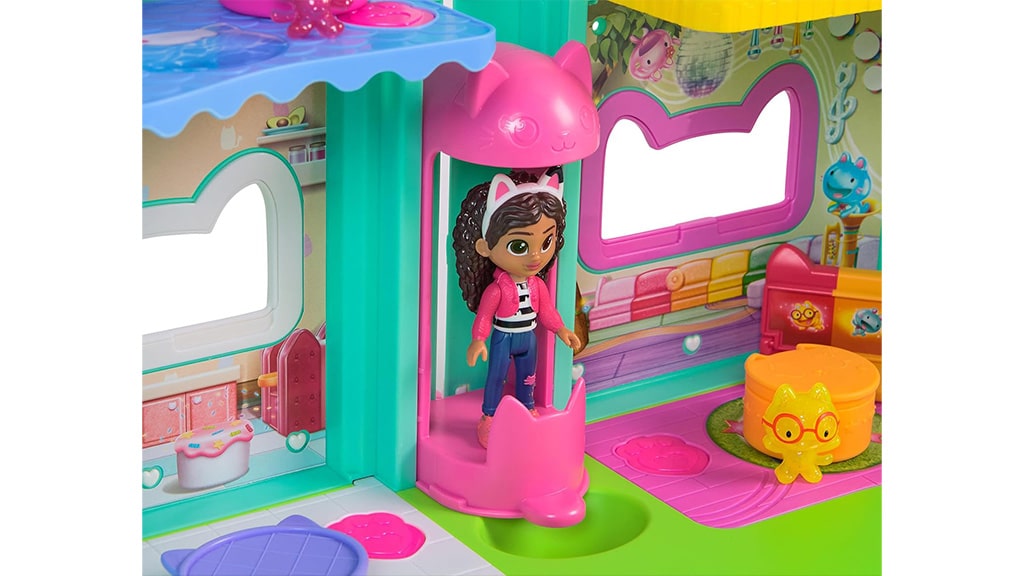 Spin Master aduce la viață lumea magică a Casei de Păpuși a lui Gabi cu Casa de Păpuși Interactivă Meow-mazing a lui Gabi! Această casă de păpuși are o înălțime de peste 60 cm și dispune de șapte camere interactive. Printre caracteristicile speciale ale casei se numără ochii animați cu afișaj LCD, un lift Cat-a-Vator și o tobogan spirală, care fac joaca și mai palpitantă.Copiii mici pot descoperi în total șase moduri de joc, inclusiv două jocuri distractive: Jocul Zilnic cu Pisica și Găsește-mă! Dacă apasă butonul nas de pisică de pe acoperiș sau butoanele Paw Bump Magic de la diferite etaje, se activează diverse animații și surprize.