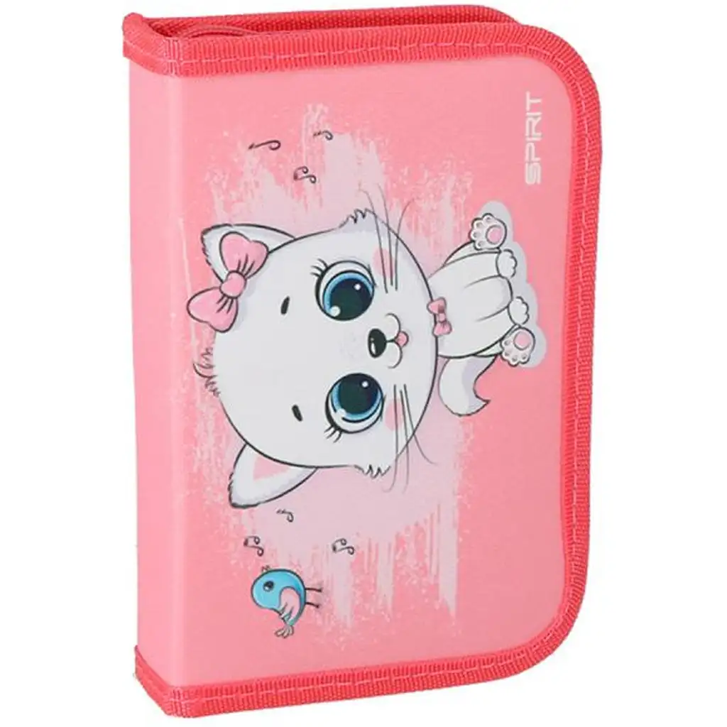 Penarul Spirit Cuki cu model pisicuță este alegerea perfectă pentru orice mic iubitor de animale care adoră accesoriile școlare drăguțe, vesele și colorate! Pe partea din față a penarului, o pisicuță albă cu ochi mari și fundiță privește jucăuș, pe un fundal roz vesel, completat de o mică păsărică – ceea ce va aduce cu siguranță un zâmbet pe fața copilului tău în fiecare zi de școală.