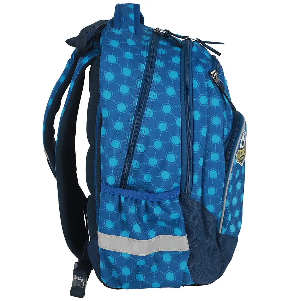 Dacă copilul tău este pasionat de fotbal, acest rucsac Spirit Soccer Champion va fi cu siguranță pe placul său! Culorile dinamice de albastru și modelul 3D cu minge de fotbal care lovește plasa adaugă un adevărat impuls sportiv zilelor obișnuite. Rucsacul nu doar că arată cool, dar designul său este de asemenea practic și confortabil, fiind astfel o alegere perfectă pentru mersul la școală.