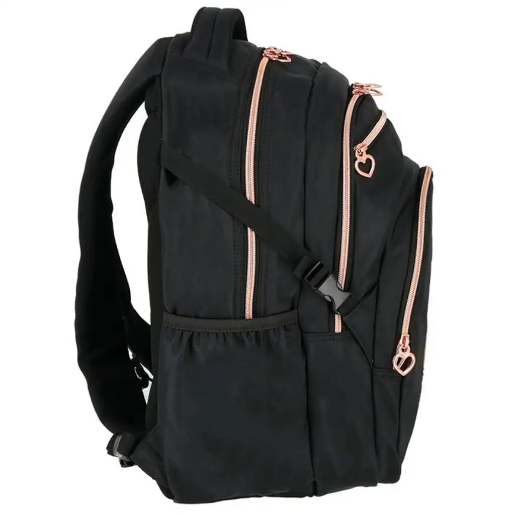 Compartimentul principal al ghiozdanului este suficient de spațios pentru a depozita confortabil dosare A4, în timp ce cele două buzunare interioare întărite oferă protecție suplimentară pentru dispozitivele digitale. Buzunarele frontale sunt practice pentru depozitarea obiectelor mai mici, cum ar fi cheile, portofelul sau telefonul mobil, și există chiar și un buzunar separat pentru căști. Compartimentele organizatoare integrate ajută la menținerea ordinii accesoriilor școlare, astfel încât copilul tău să găsească rapid ceea ce caută.