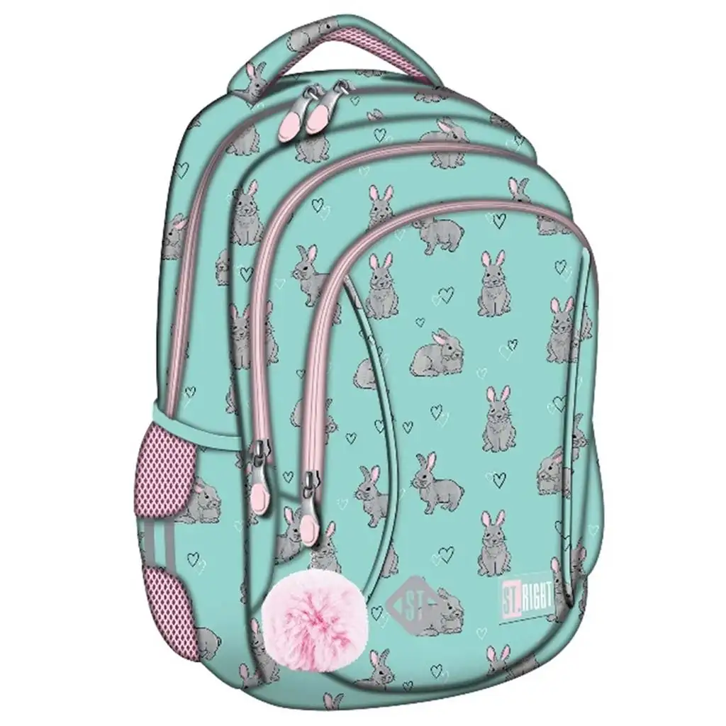 St.Right Grey Rabbits ghiozdan ergonomic cu iepurași, rucsac școlar BP26 39x27x17cm