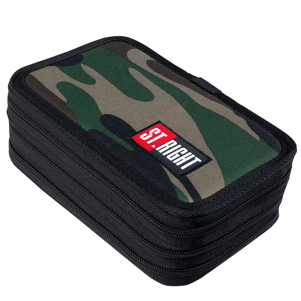Penarul St.Right Moro cu trei compartimente este alegerea perfectă pentru copiii care iubesc modelele militare și accesoriile școlare organizate și bine structurate. Acest penar este stilat și funcțional, facilitând fiecare zi de școală.