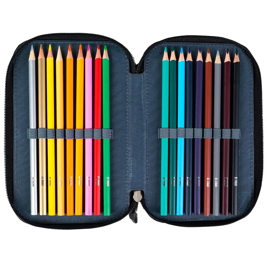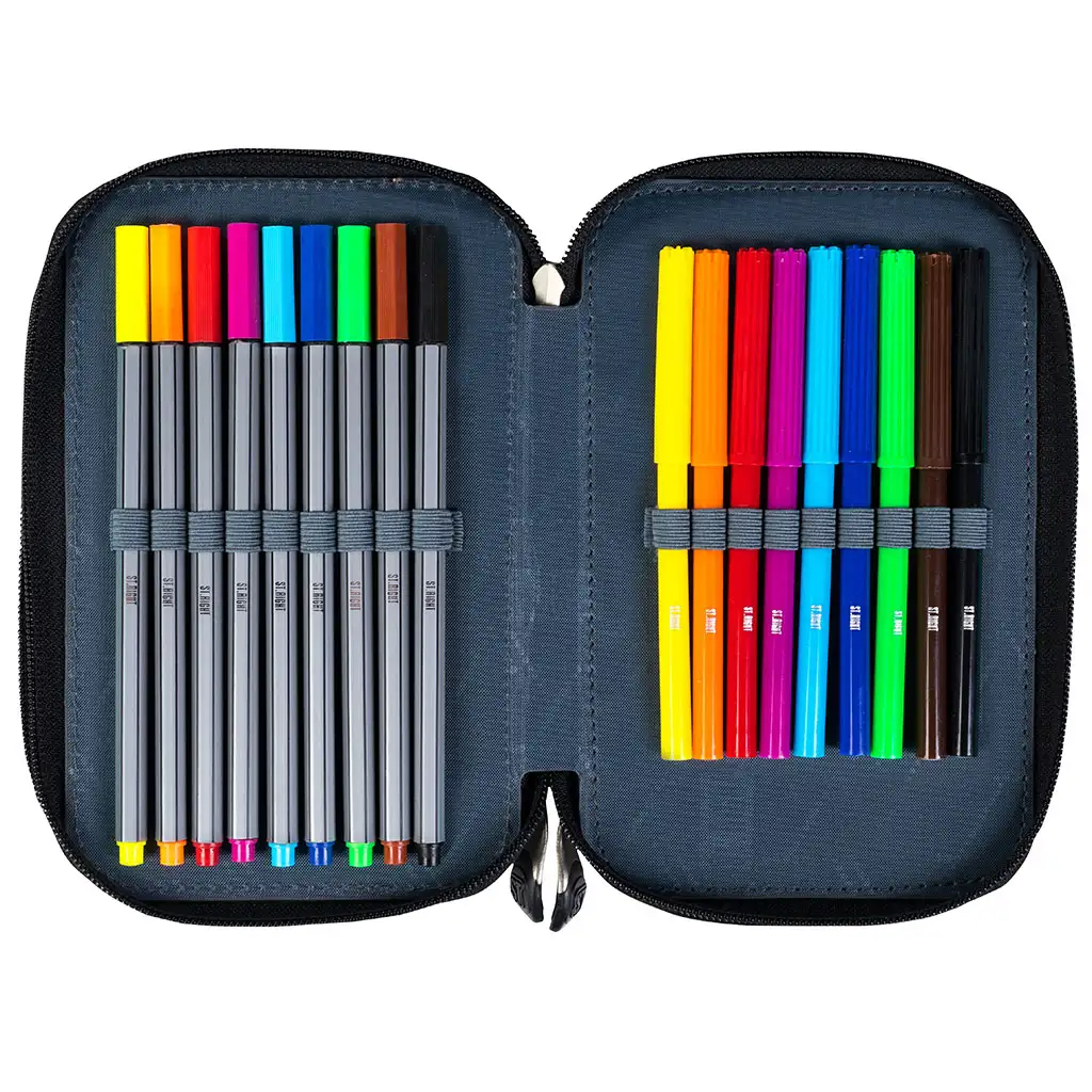 Penarul are trei compartimente separate, fiecare cu fermoar, astfel încât toate instrumentele școlare să fie păstrate în siguranță și organizate. Mânerele ergonomice ale fermoarelor sunt ușor de utilizat, chiar și pentru mâinile celor mai mici. Numeroasele suporturi și separatoare din compartimente ajută la păstrarea ordonată a creioanelor, pixurilor și altor instrumente, astfel încât să găsești întotdeauna ușor ceea ce ai nevoie.