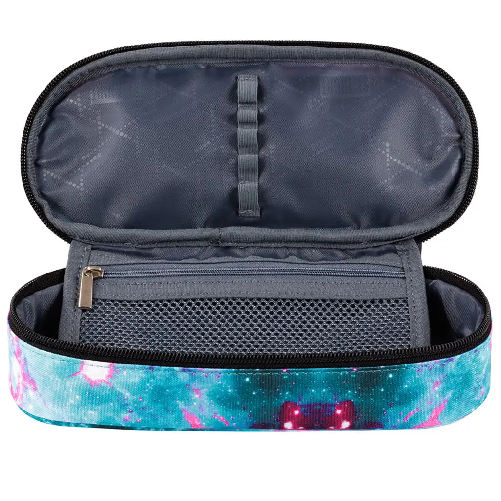 Penarul are un compartiment principal spațios, care oferă suficient loc pentru pixuri, creioane, radiere și alte rechizite școlare. În interior, există un buzunar cu plasă cu fermoar, ideal pentru depozitarea obiectelor mai mici, cum ar fi ascuțitoarele sau radierele. Organizarea instrumentelor de scris este facilitată de curelele de fixare, astfel încât totul să rămână mereu la locul său.