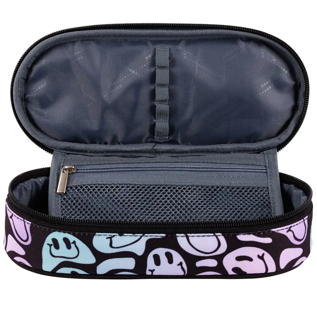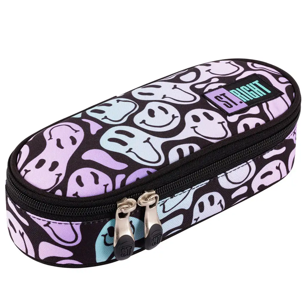 Penarul oval St.Right Crazy Face este un accesoriu vesel și practic, care cu siguranță va înveseli rutina zilnică de școală. Culorile vii și multitudinea de fețe zâmbitoare îți vor aduce imediat un zâmbet pe față, în timp ce designul practic al penarului menține toate instrumentele de scris în ordine și ușor accesibile.