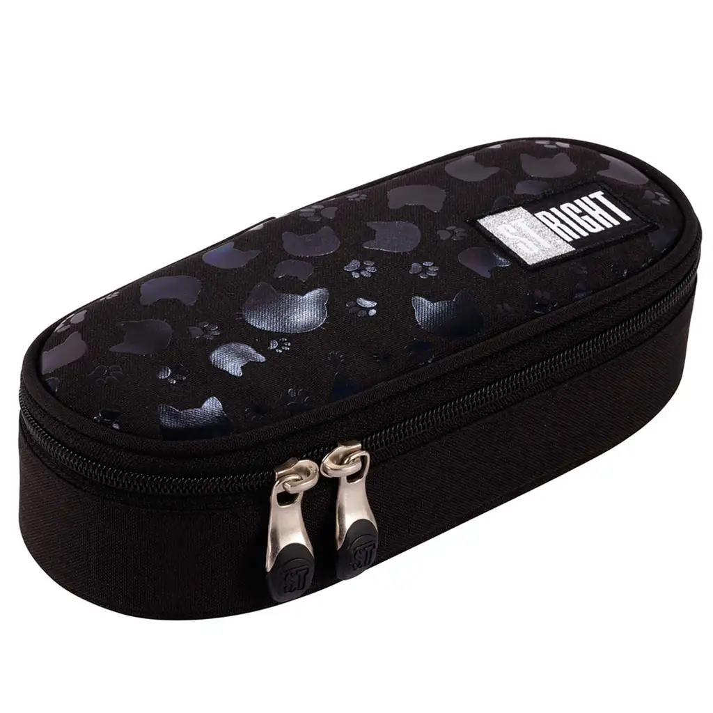 Penarul oval St.Right Black Cats cu pisici este o alegere perfectă pentru orice elev care iubește accesoriile școlare stilate și practice. Acest penar strălucește într-o culoare neagră elegantă, decorată cu modele discrete și lucioase de pisici, oferindu-i un aspect cu adevărat la modă.