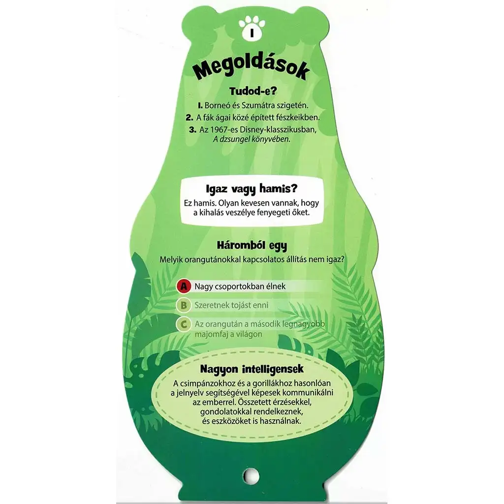 Pe cărți îi așteaptă pe copii întrebări și activități colorate: întrebări fulger, afirmații adevărat sau fals și întrebări tip quiz cu trei variante de răspuns îi ajută să învețe, într-un mod jucăuș, numele animalelor, habitatul, obiceiurile și caracteristicile lor speciale. Oare știu pe ce insulă trăiește fiecare animal? Pot face diferența dintre adevăr și mit? Sau pot recunoaște care afirmație nu este adevărată despre un anumit animal?