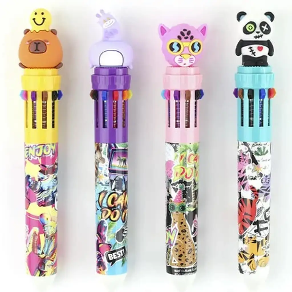 Evaluare Stilou cu bilă cu 10 culori, design cu animale haioase, diverse modele, 1 buc.