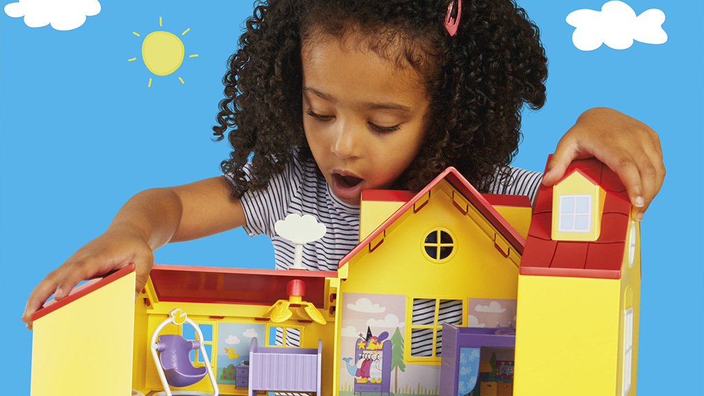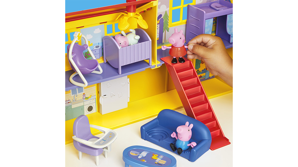 Hasbro salută cel mai nou purceluș și extinde familia în creștere cu patru noi jucării. Copiii pot crea acum povești noi pentru Peppa, George și Evie cu Oinks & Snuggles Păpușa Interactivă Evie, Setul de Figurine Familia de Cinci, Mașina Mare de Familie a lui Peppa, precum și cu Casa Mare Pliabilă a lui Peppa. Aceste noutăți oferă posibilitatea familiilor să își extindă colecția de jucării atunci când aceste produse vor apărea pe rafturile celor mai mari magazine începând cu 1 august. Familiile pot deja să precomande aceste jucării online și în curând vor găsi și mai multe informații despre alte posibilități. Aceste jucării nu oferă doar distracție, ci și experiențe comune pentru copii și părinți, pe măsură ce descoperă împreună lumea Peppa.