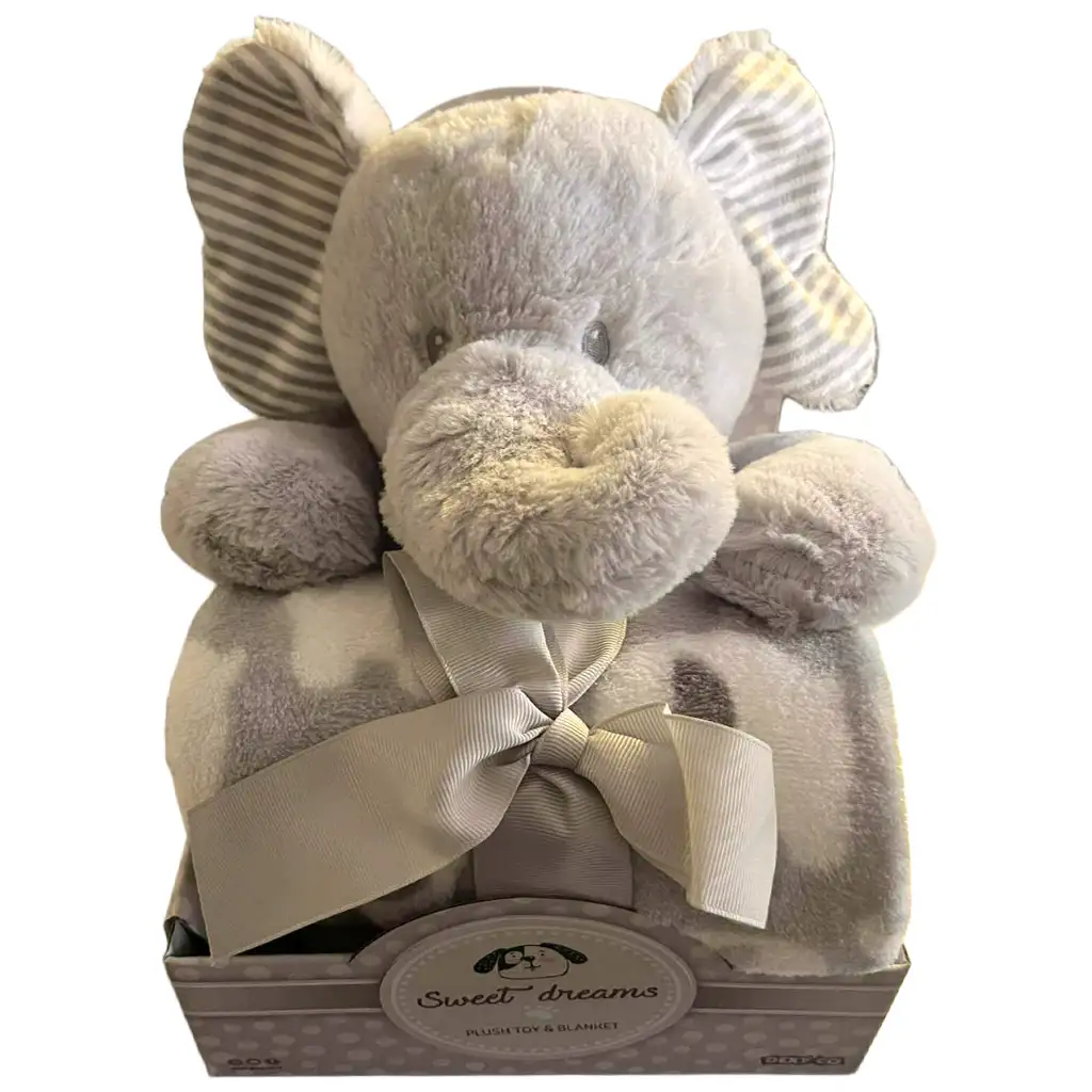 SweetDreams: Pătură și elefant din pluș de culoare gri