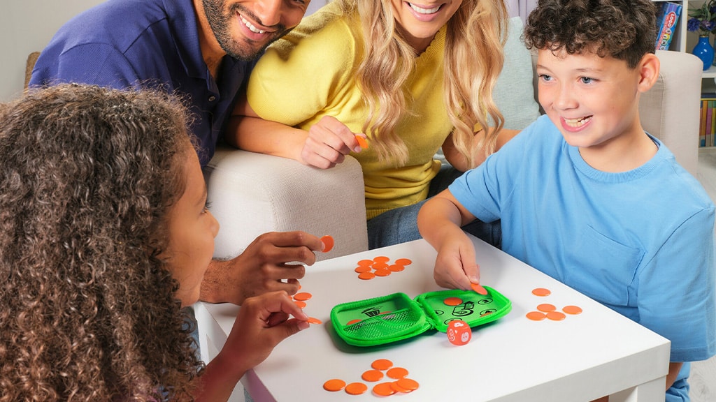 Ne place că acest **joc** aduce energie și **competiție** în timpul petrecut împreună, fiind în același timp **ușor de învățat**. În plus, este **prietenos cu călătoriile**, astfel încât familia îl poate pune cu ușurință în mașină sau într-un rucsac și îl poate lua oriunde. **Toți membrii familiei**, fie adulți sau copii, se pot bucura de acest joc, deoarece a fost conceput special pentru a fi distractiv pentru toate vârstele. Este o alegere perfectă dacă căutăm un program **fără ecran** pentru serile de jocuri de societate și ajută familia să petreacă timp împreună, râzând și concurând.Este important de știut că acest joc este destinat copiilor de 5 ani și mai mari, însă familiile pot decide dacă și copiii mai mici pot juca cu el. Aceasta oferă posibilitatea ca părinții să țină cont de abilitățile individuale și nivelul de dezvoltare al copilului, astfel încât toată lumea să se poată bucura de joc în siguranță și cu plăcere. Jocul în comun întărește legăturile de familie și dezvoltă abilitățile copiilor.