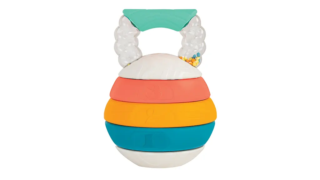 Jocul Bebé Fuerte Stack and Count Kettlebell este un joc care se poate stoca singur și se poate stivui, care încurajează bebelușii de 6 luni și mai mari să-și dezvolte abilitățile. Acest joc de activitate are trei inele, un mâner zornăitor și o bază, toate putând fi asamblate pentru a crea o figură de kettlebell. Părinții trebuie să demonteze jocul pentru a-l scoate din ambalaj.