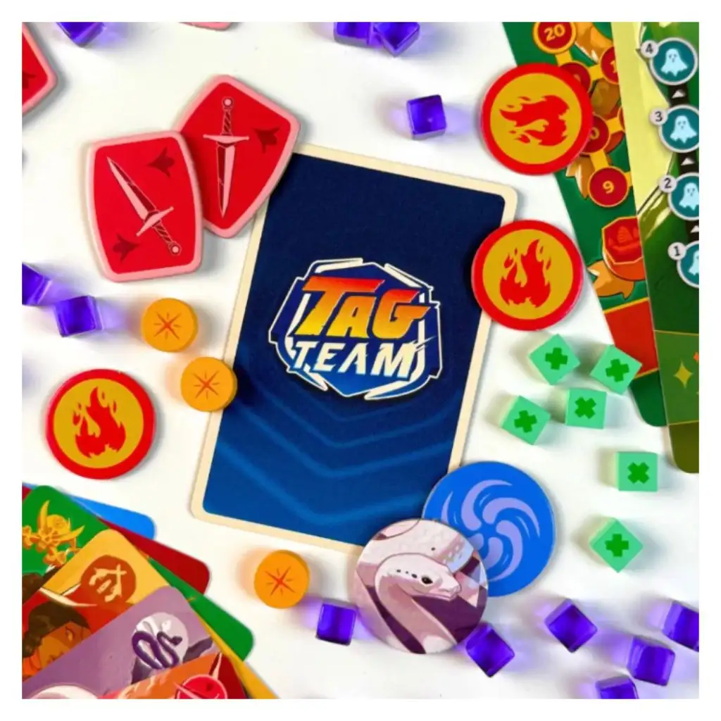 Particularitatea jocului Tag Team este că nu se bazează pe reflexe, ci pe planificare: fazele de luptă și de construire se alternează, astfel că puteți îmbunătăți pachetul în fiecare rundă, întări strategia și crea serii de mișcări din ce în ce mai puternice. Deoarece vă dezvoltați deliberat pachetul și folosiți puterile personajelor în mod coordonat, jocul rămâne o confruntare tactică tensionată, dar clară, până la final. O alegere ideală pentru cei care iubesc duelurile de tip duo, dezvoltarea de personaje și senzația de „încă un meci!”.