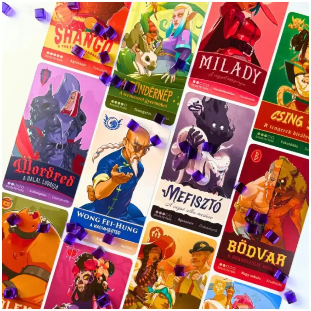 Conținut bogat: planșe de personaje, cărți, jetoane și marcatori pentru meciuri variate