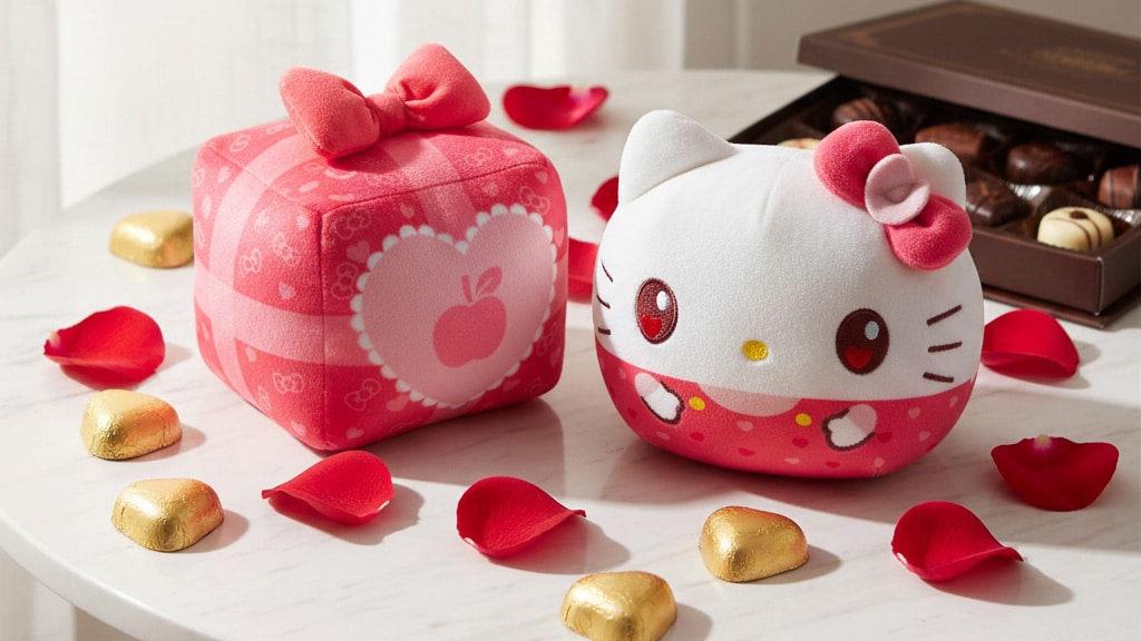 Familiile nu trebuie să împacheteze aceste noi plușuri – ele arată deja ca un cadou. Reversible Present Box Plushies oferă o surpriză de Ziua Îndrăgostiților cu adevărat specială, două în unu, deoarece îi încântă pe copii cu modele diferite și cu parfum de căpșuni. Pe o parte vedem o cutie de cadou, iar dacă o întoarcem pe dos, apare personajul nostru preferat de la Sanrio. Colecția conține trei figurine prietenoase cu model de inimioare: Hello Kitty, My Melody și Kuromi. Aceste plușuri nu sunt doar drăguțe, ci și parfumate, astfel încât pot fi cadouri perfecte pentru orice ocazie, mai ales de sărbătoarea iubirii.