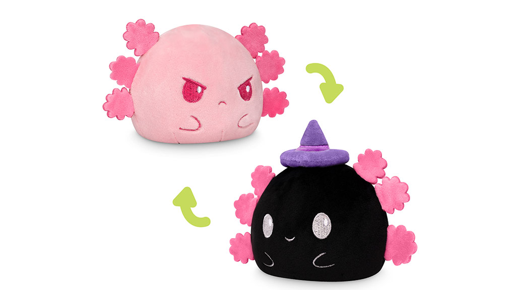 Oare copiii primesc o farsă sau un cadou când deschid această jucărie de pluș surpriză? Fiecare cutie conține un pluș reversibil de 3 inci, care, atunci când este întors, dezvăluie o creatură înfricoșătoare. Se pot colecționa șase plușuri diferite, inclusiv un axolotl, un liliac, o pisică, un panda, un dovleac și un păianjen.
