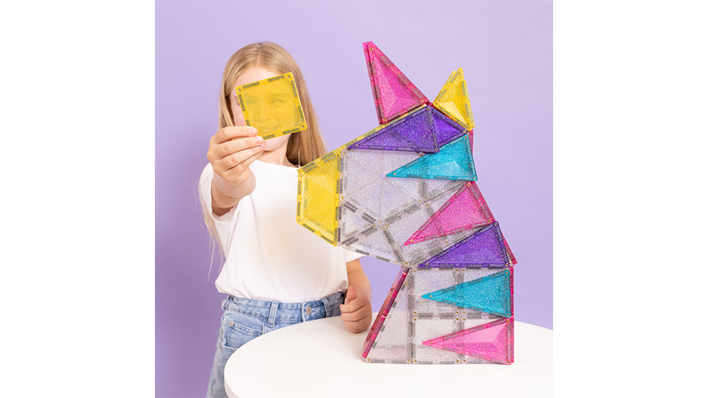 Familiile își pot extinde acum colecția Connetix, în timp ce copiii își pot lăsa liberă creativitatea cu ajutorul celor două noi seturi Connetix, care sunt deja pregătite să ajungă în orice casă și spațiu de depozitare a jucăriilor. Pentru copii se deschid și mai multe posibilități de construcție dacă descoperă și alte seturi. Jucăriile Connetix nu sunt doar distractive, ci dezvoltă și abilitățile de rezolvare a problemelor, motricitatea fină și gândirea spațială. Cu elementele colorate și magnetice, copiii pot crea propriile lor lumi, clădiri, vehicule și creații pline de imaginație, jucându-se împreună cu membrii familiei sau prietenii. Seturile Connetix oferă o experiență de joc captivantă și educativă pentru toate vârstele, fiind astfel alegerea perfectă pentru orice casă.Fiecare plăcuță conține sclipici foarte mult, ultra-fin, cu reflexii irizate, care reflectă lumina și astfel strălucește intens. Setul conține triunghiuri și pătrate care strălucesc în culori de curcubeu și pastel, permițând crearea unor opere cu adevărat magice și încântătoare pentru ochi. Aceste plăcuțe nu sunt doar pentru joacă, ci sunt excelente și pentru construcții creative și activități de dezvoltare, oferind astfel o experiență plină de bucurie pentru fiecare copil.