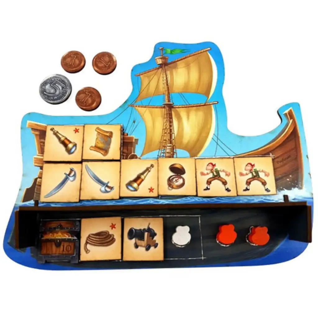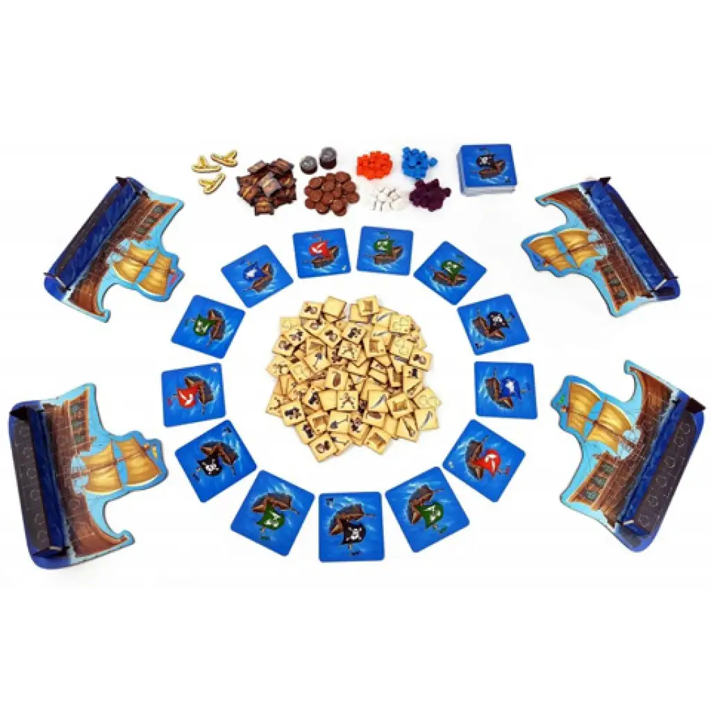 Trebuie să încarci cât mai repede cala navei, deoarece în curând va trebui să navighezi după aventuri, iar ceilalți pirați se pregătesc să te depășească, fie în luptă, fie în comerț. Jocul Alles an Bord poate fi împărțit în două părți distincte. În prima parte, trebuie să te întreci cu ceilalți pentru a lua rapid marfa din centru, astfel încât în a doua etapă, în timpul aventurii, să ai suficientă și, desigur, marfă adecvată acumulată în burta navei, pe care o poți folosi pentru explorare sau o poți schimba. Dacă este necesar, poți lupta și încheia contracte cu adversarii, dar inima piraților bate întotdeauna pentru același lucru, și anume obținerea de comori și bogății abundente.