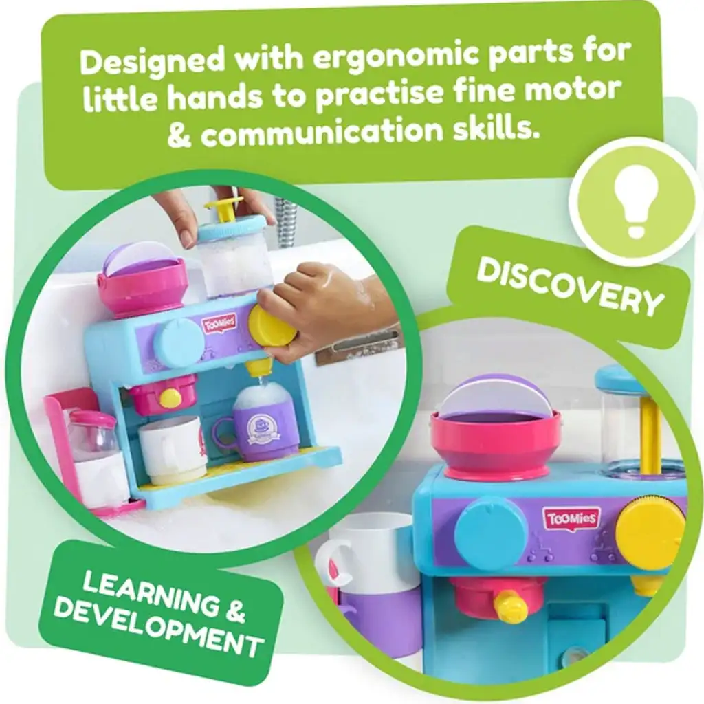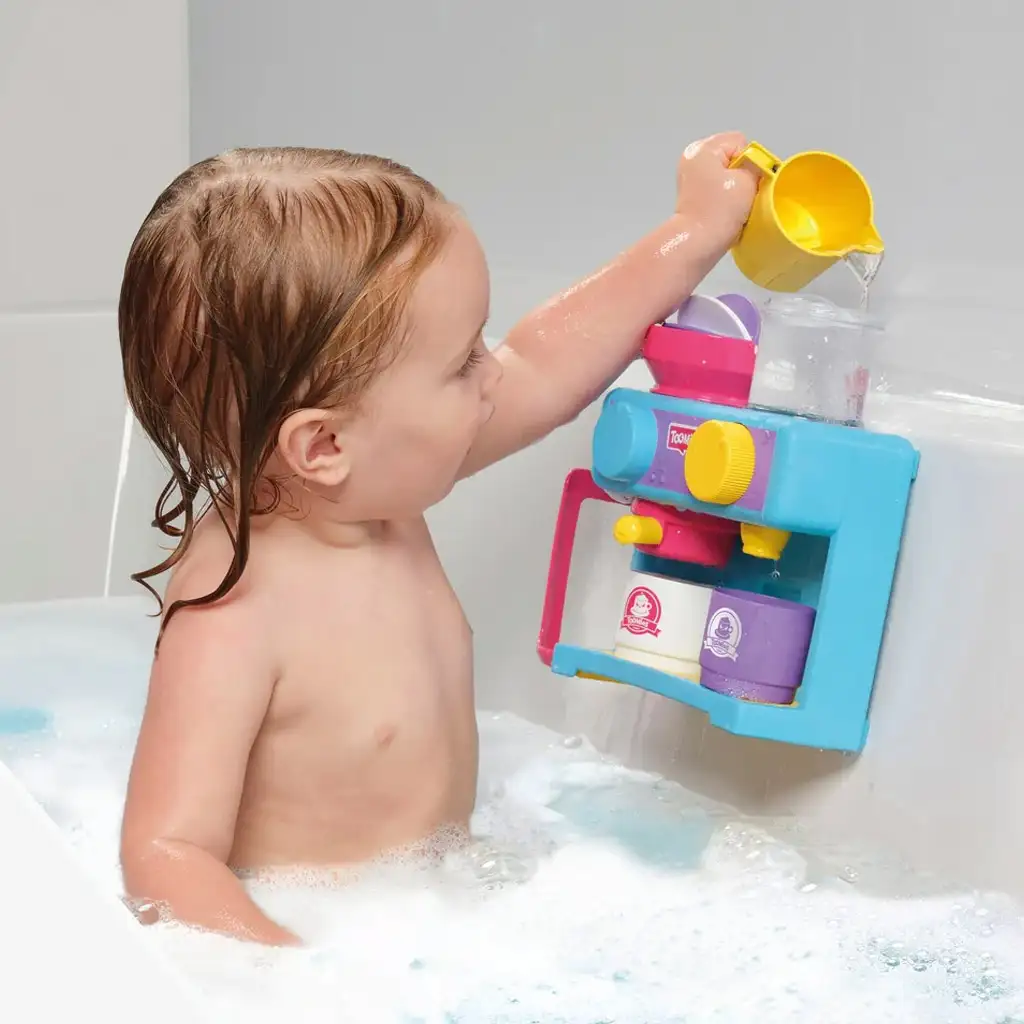 Tomy Toomies: Joc de baie cu spumă de cafeaTomy Toomies: Joc de baie cu spumă de cafea