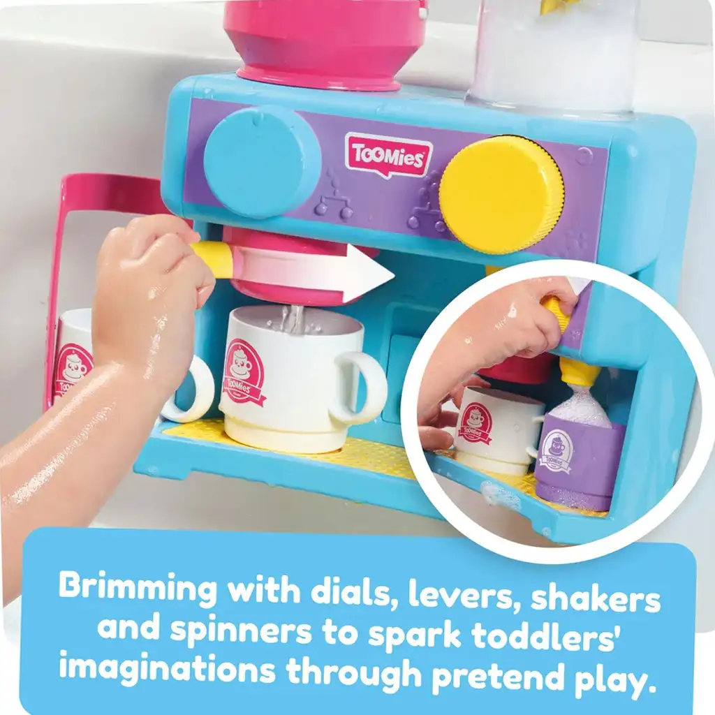 1. **Cafenea în cadă**: Setul de jocuri Tomy Toomies le permite copiilor să trăiască experiența unei cafenele reale în cadă.