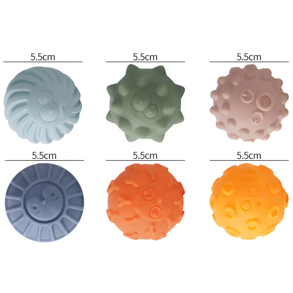 Touchball: Set de 6 mingi pentru dezvoltarea simțului tactil, în culori pastelateTouchball: Set de 6 mingi pentru dezvoltarea simțului tactil, în culori pastelate