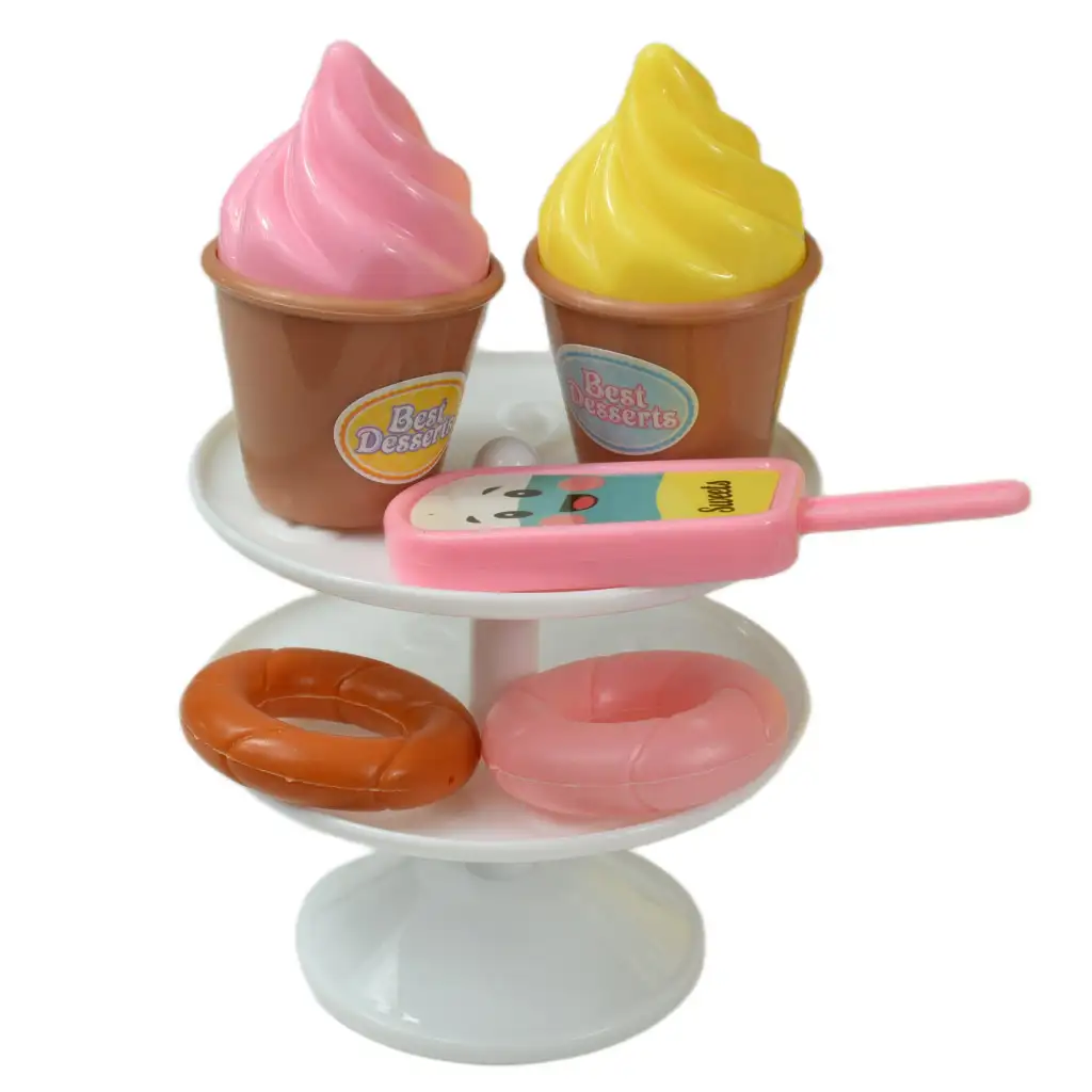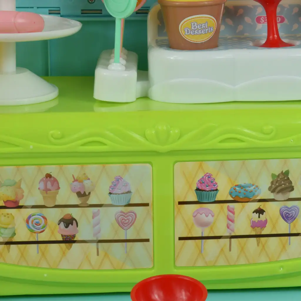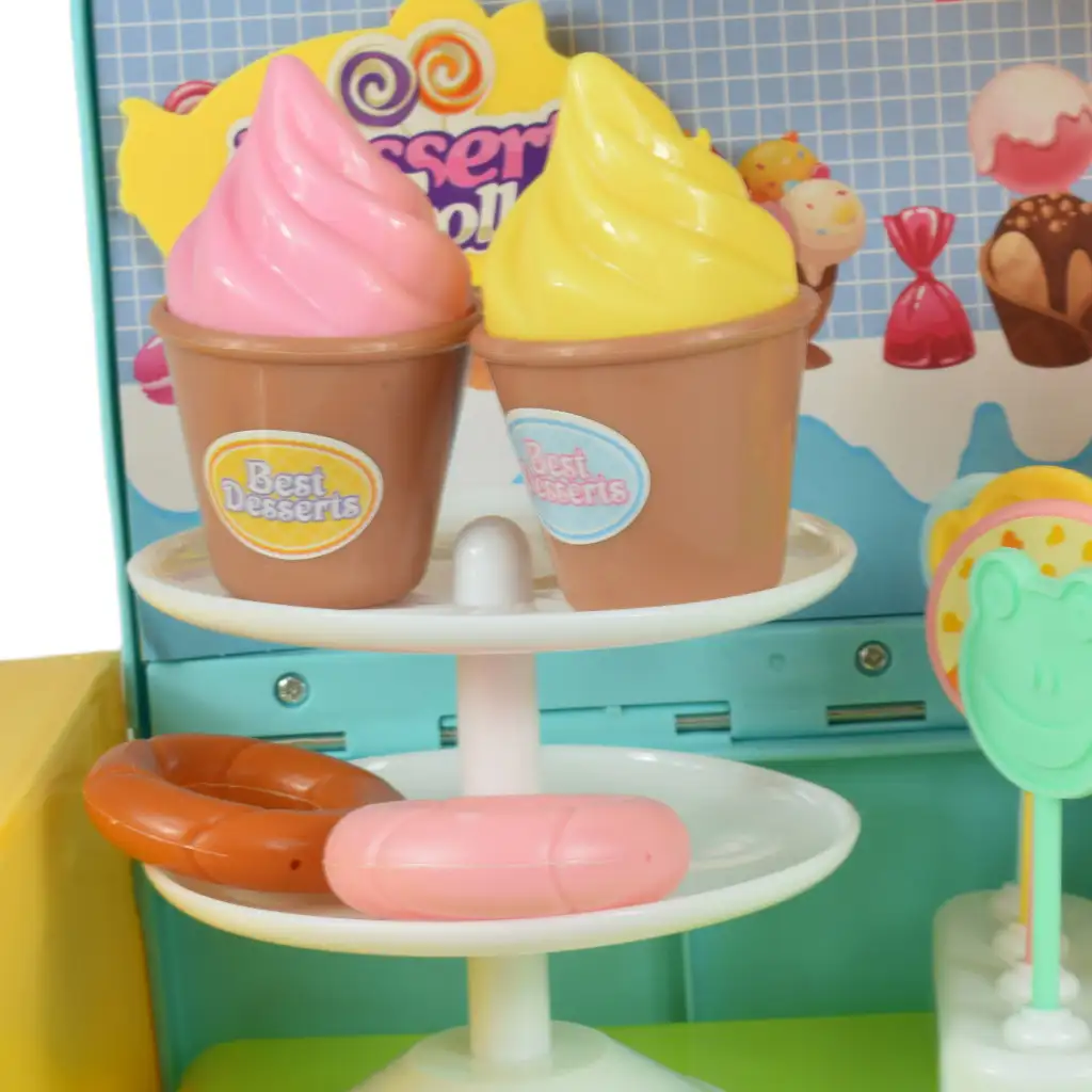 Acest set de jocuri cu deserturi 2 în 1 este cu adevărat impresionant și versatil. Pe lângă funcția de compartiment de marfă și stand de patiserie, include și alte accesorii care fac jocul și mai colorat și mai interesant. Imaginația copiilor este singura limită a experiențelor pe care le pot crea cu acest joc distractiv și interactiv.