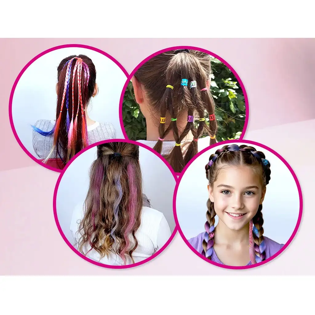Pachetul include și numeroase elastice colorate și diferite accesorii pentru păr, cu ajutorul cărora copiii pot crea propriul stil unic – fie că este vorba de o zi veselă la școală, carnaval, petrecere de ziua de naștere sau doar o după-amiază creativă acasă. Setul nu necesită nicio pregătire specială, astfel încât copiii îl pot folosi singuri pentru a descoperi lumea coafurilor, sau poate deveni un program special mamă-fiică.