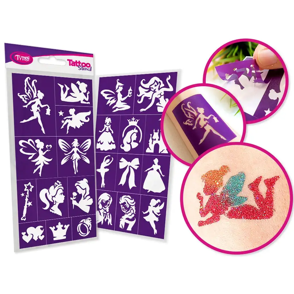 TyToo: Set de șabloane pentru tatuaje cu sclipici zâne și prințese 22 buc.TyToo: Set de șabloane pentru tatuaje cu sclipici zâne și prințese 22 buc.