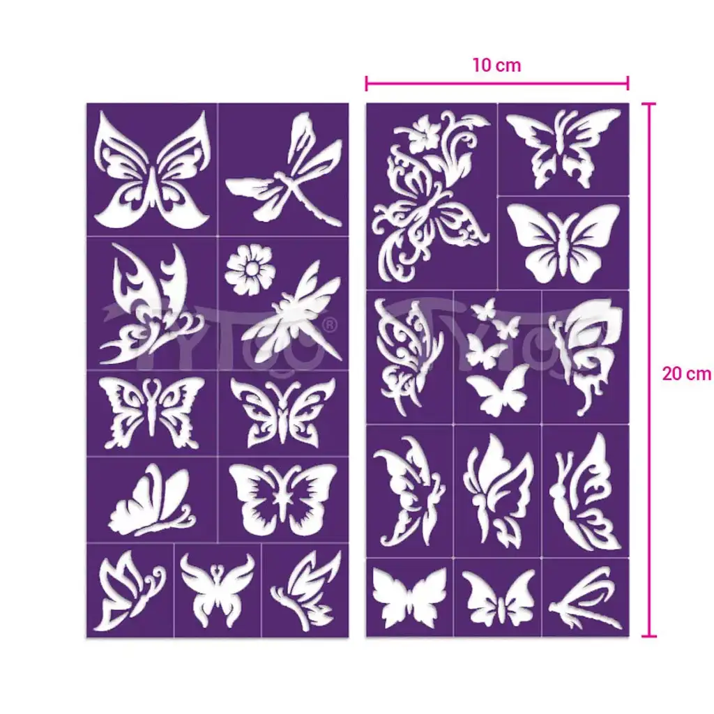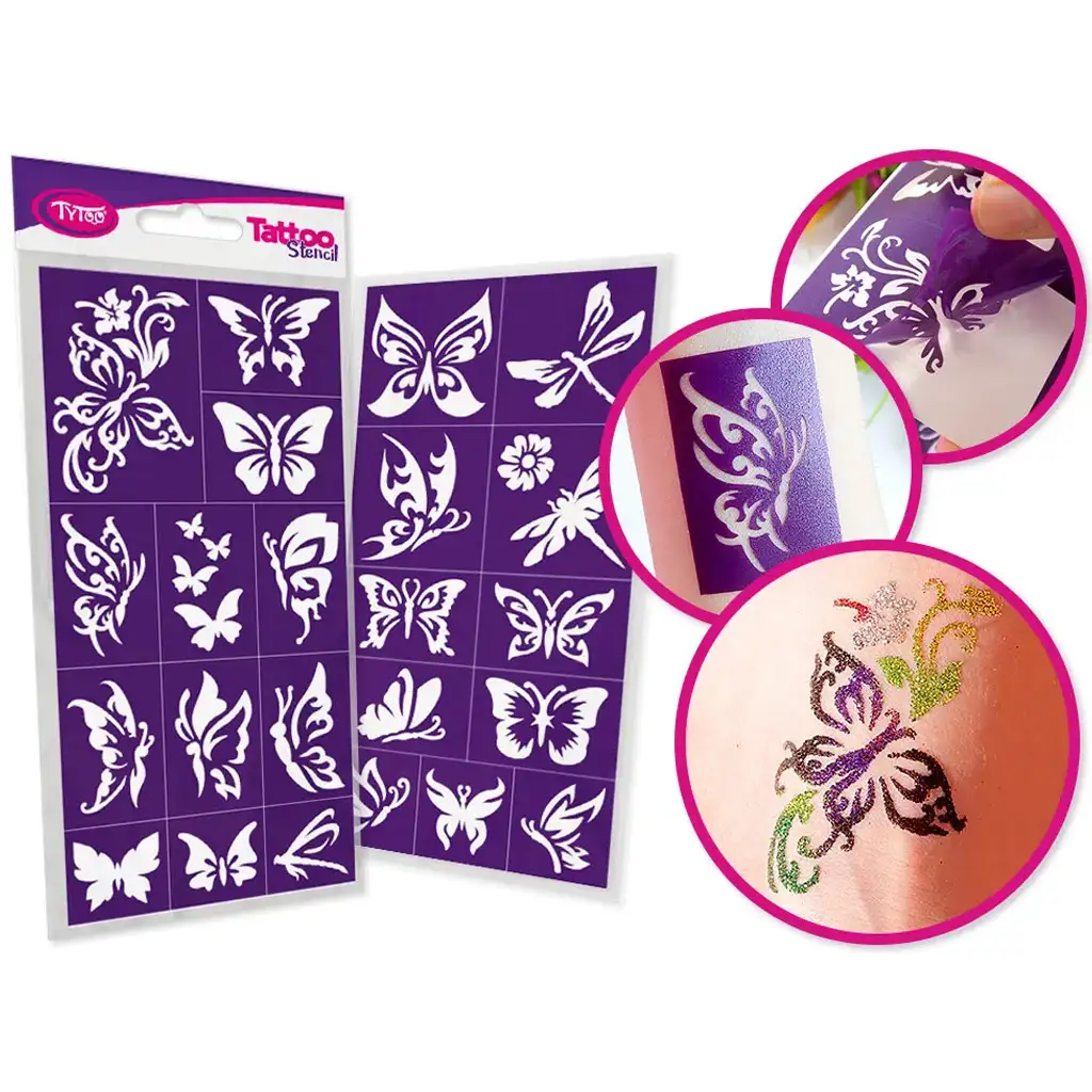 TyToo: Set șabloane de tatuaj cu sclipici Fluturi, 23 bucăți