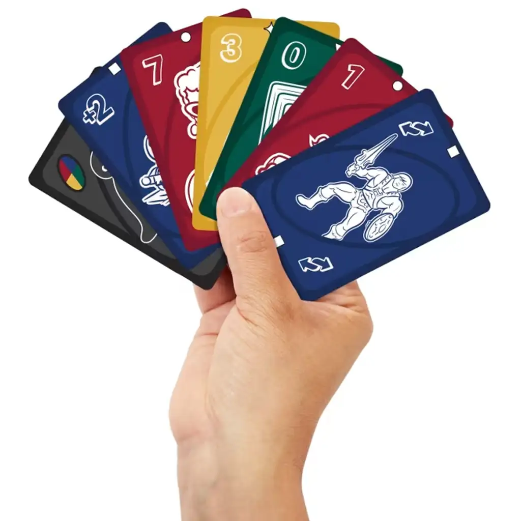 Culorile pachetului sunt mai profunde, cu tonuri contrastante, iar cărțile sunt dotate cu pictograme ușor de recunoscut pentru persoanele cu discromatopsie. Printre personaje îndrăgite care apar pe cărți se numără He-Man, Barbie, mașinile Hot Wheels, Thomas locomotiva cu aburi sau literele Scrabble – făcând jocul nu doar distractiv, ci și o călătorie plină de nostalgie în universul Mattel.