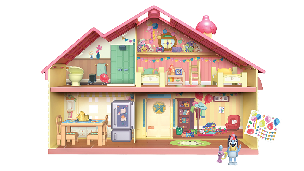 Acest set de joacă actualizat, cu două etaje, vine cu 11 accesorii pentru a amenaja camerele, precum și cu autocolante pentru a crea o atmosferă festivă pentru ziua de naștere a lui Bluey. Setul de joacă include o figurină unică Bluey cu pălărie de petrecere și un nou duș pentru baie. Bucătăria este echipată cu un frigider și un cuptor pentru a face jocul și mai captivant. Copiii vor adora să creeze propriile povești și să recreeze aventurile lui Bluey în această casă detaliată.