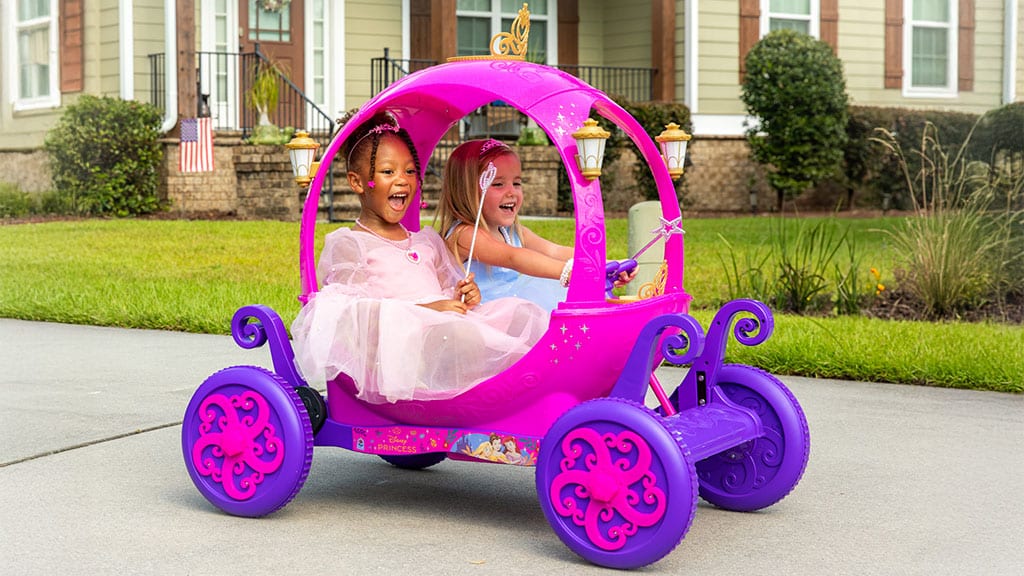 Copiii pot merge într-un adevărat stil de basm cu această caleașcă motorizată de prințesă. Poate fi folosită până la 45 de minute cu o singură încărcare și poate atinge o viteză de 7 km/h. Acest vehicul special nu este doar distractiv, ci ajută și la dezvoltarea imaginației, în timp ce cei mici pot trăi bucuria jocului ca prințesă sau prinț. Prinţese Disney inspiră designul și detaliile bogate care îi vor fermeca pe toți copiii, astfel încât caleașca este alegerea perfectă pentru o zi de naștere sau orice altă ocazie specială.