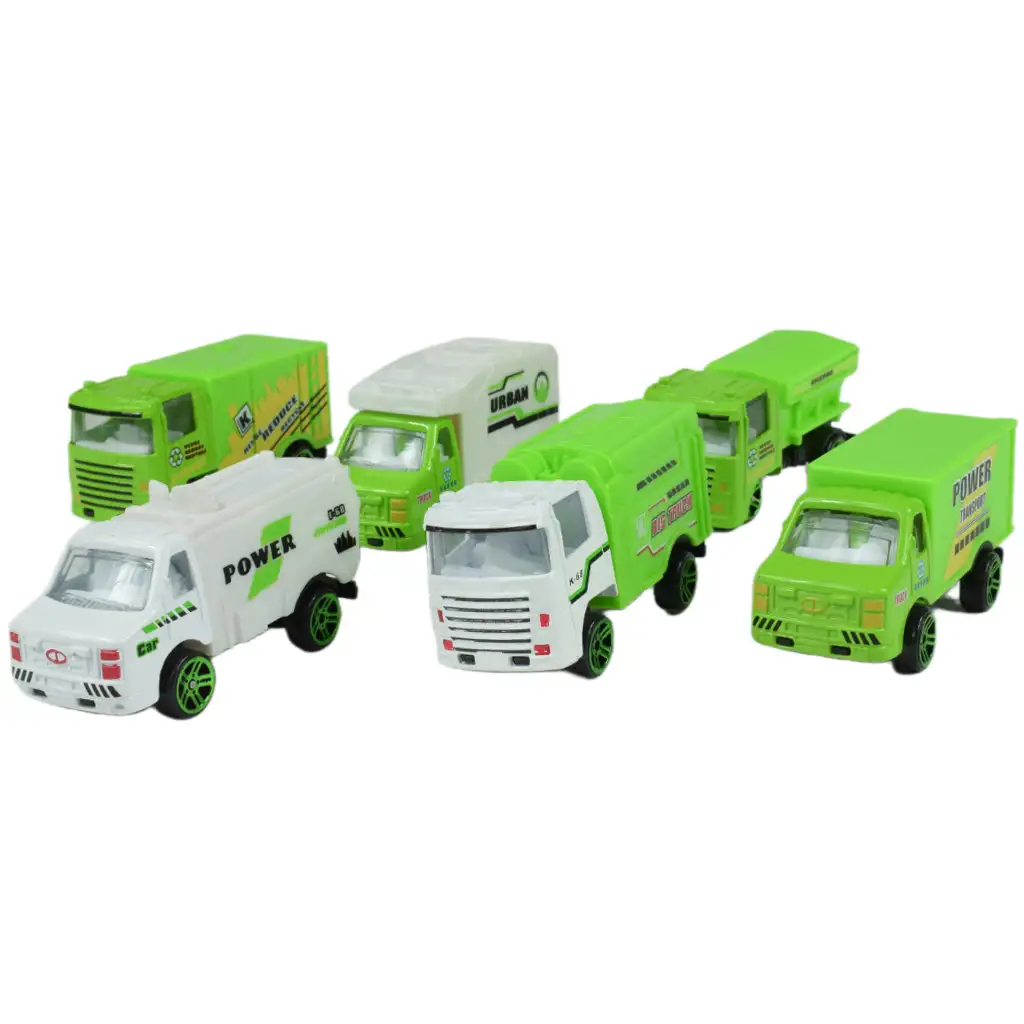 Materialul acestor camioane este o combinație de metal și plastic, care asigură durabilitatea și aspectul lor realist. Setul include șase camioane de colectare selectivă a deșeurilor diferite, astfel încât copilul tău poate simula diferite situații și poate colecta diferite tipuri de deșeuri în timpul jocului. Astfel de jocuri pot ajuta copiii să învețe importanța colectării selective a deșeurilor și să dezvolte o gândire ecologică, în timp ce se distrează și sunt creativi. Pentru copiii interesați de vehicule și protecția mediului, această flotă de colectare selectivă a deșeurilor poate fi un joc impresionant și inspirator.