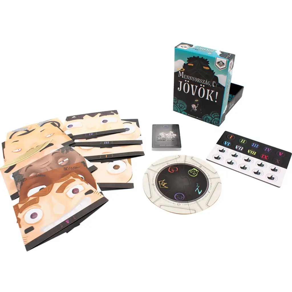 Dacă îți dorești o experiență cu adevărat memorabilă pentru serile de jocuri în familie sau cu prietenii, Mennyország, jövök! (Vin, Raiule!) îți va însenina garantat seara! Acest joc de societate ingenios și unic are loc la porțile Raiului – acolo unde doar câteva locuri au mai rămas pentru eternitate. Jucătorii, în rolul unor suflete, se adună în fața unei porți uriașe și mistice, în timp ce un bătrân sever, dar cu stil, anunță: „Raiul e aproape plin. Voi decideți cine poate intra și cine rămâne afară!” De aici începe o partidă plină de întorsături și intrigi.