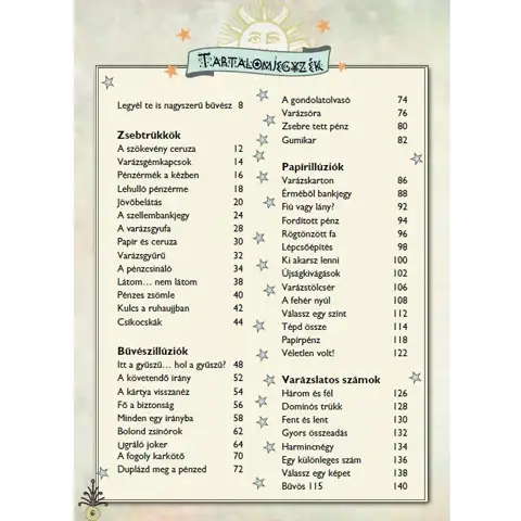 Lumea magicienilor este plină de mistere pe care nu le poți învăța pur și simplu. Ai nevoie de o carte de magie, în care vei găsi toate trucurile. Această carte conține descrieri de trucuri pe mai mult de 200 de pagini și include imagini pentru a înțelege mai ușor explicațiile. Unul dintre cele mai bune lucruri la această carte este că ai nevoie doar de obiecte pe care cu siguranță le găsești în gospodărie. Învață trucurile și prezintă-le fie acasă, familiei tale, fie la un eveniment de tip “Tu știi ce poți?” într-o atmosferă amuzantă, și vei vedea că vei avea un mare succes la final.