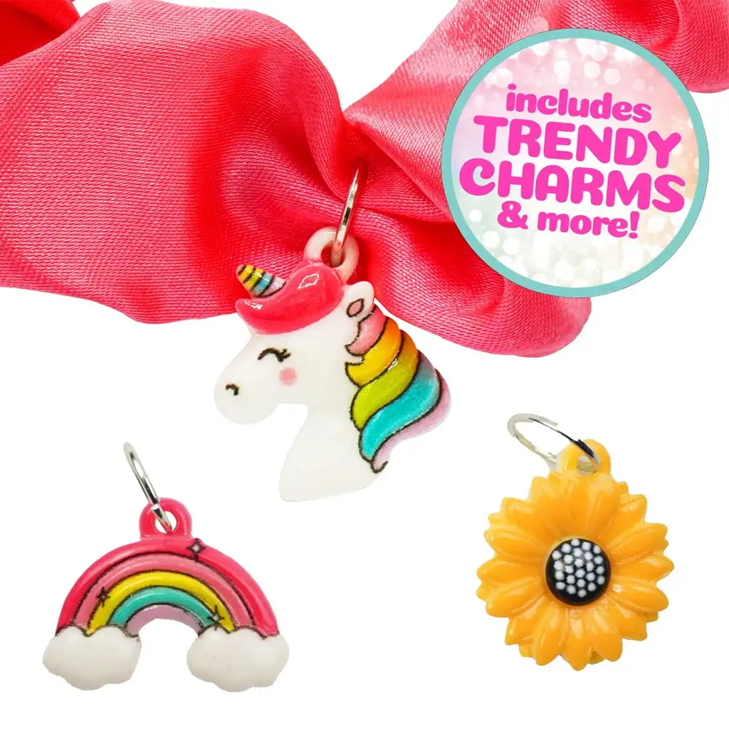 Acest set DIY oferă o oportunitate excelentă pentru dezvoltarea și exprimarea creativității copiilor, deoarece le permite să creeze accesorii la modă. Setul este special conceput pentru a face elastice de păr, astfel încât conține o mulțime de panglici de satin, pe lângă benzile elastice care formează baza elasticului de păr.